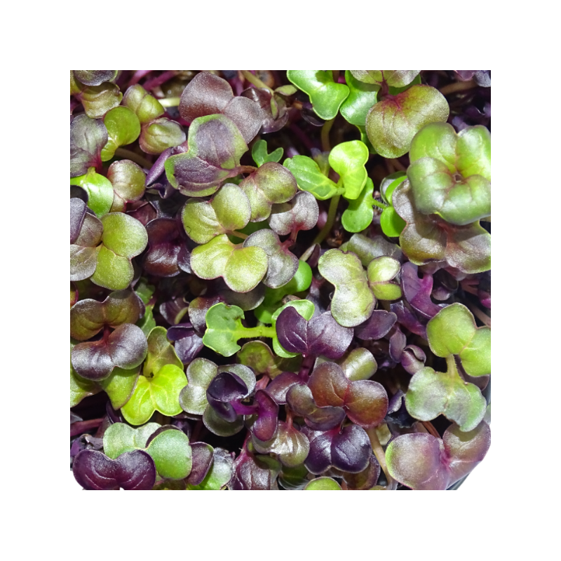 🔴 Microgreen Rábano Rojo Rambo Variedad gourmet seleccionada por chefs por su color rojo vibrante y picante limpio y persistente. Perfecto para: