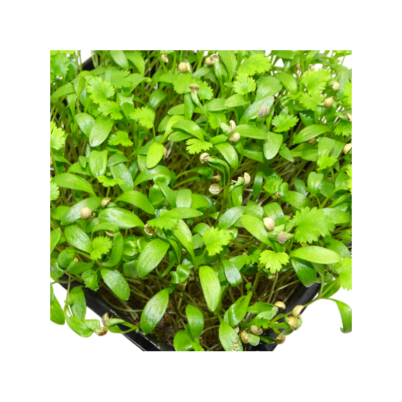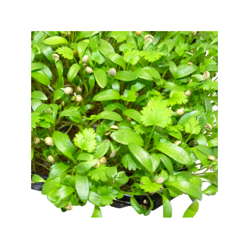 Mikagreens Cilantro en maceta – microvegetal fresquísimo, aromático y de sabor intenso. Perfecto para ensaladas, bowls, tapas y platos gourmet. Cultivo local, crujiente y listo para usar, aportando color, frescura y nutrientes a tu cocina. ¡Haz tu pedido hoy y transforma tus recetas en experiencias inolvidables!