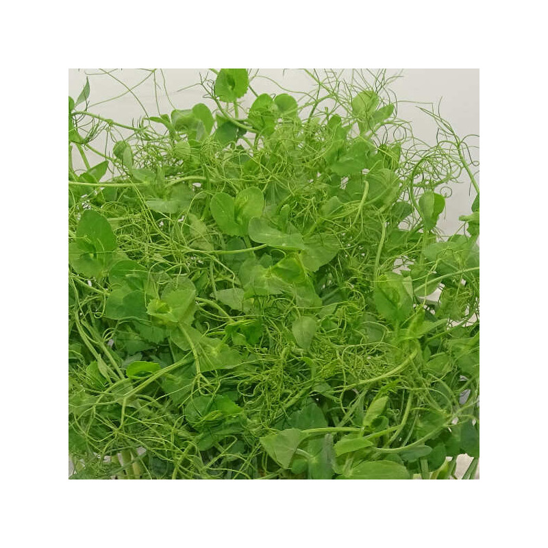 ‘Foxy’ es una cepa patentada de Pisum sativum, desarrollada específicamente para microgreens. A diferencia de variedades comunes, Foxy desarrolla cotiledones carnosos y hojas verdaderas tempranas en solo 8–10 días, con un perfil sensorial único: sabor dulce a guisante fresco recién desgranado, sin amargor ni fibrosidad.