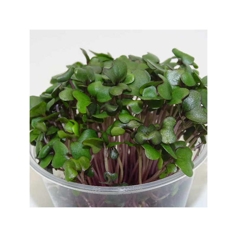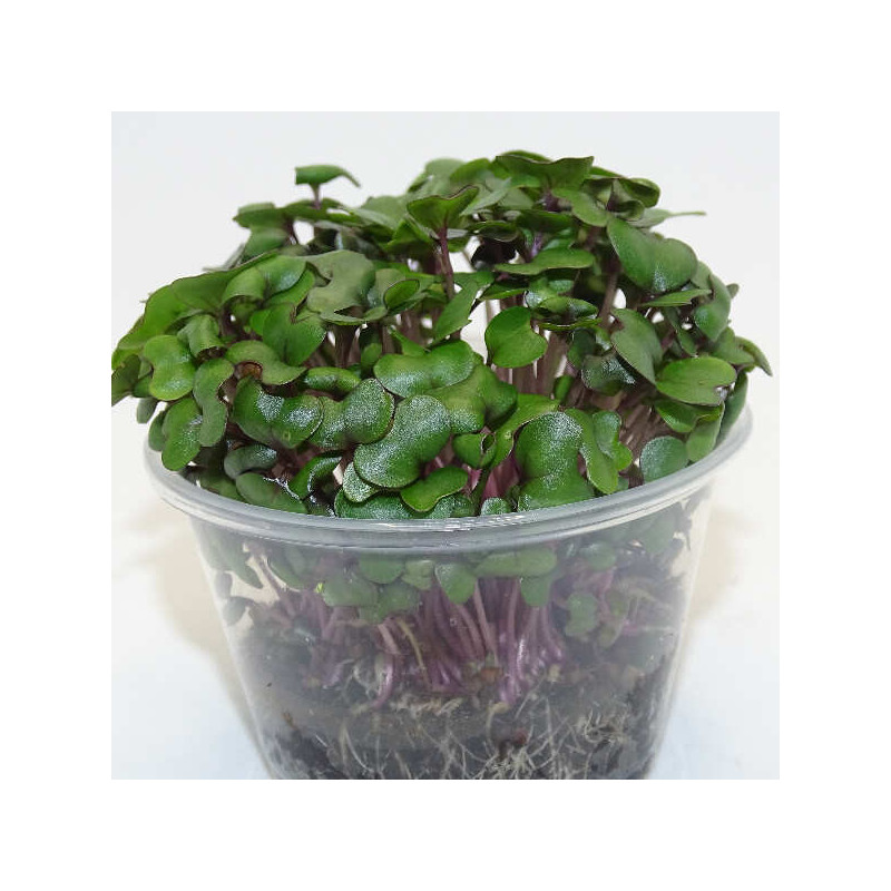 Los microgreens de repollo morado (col lombarda) en maceta viva son microvegetales frescos, intensos y llenos de vida, listos para cortar en el momento de consumo. Destacan por su color púrpura vibrante, textura tierna y sabor suave con un ligero toque dulce y crujiente. Ideales para ensaladas gourmet, bowls, tostadas o como topping decorativo y nutritivo. Este microverde es rico en antioxidantes naturales, vitaminas y compuestos beneficiosos que apoyan el sistema inmunológico y el bienestar general. Disfruta de un producto fresco, vivo y de máxima calidad directamente en tu cocina.