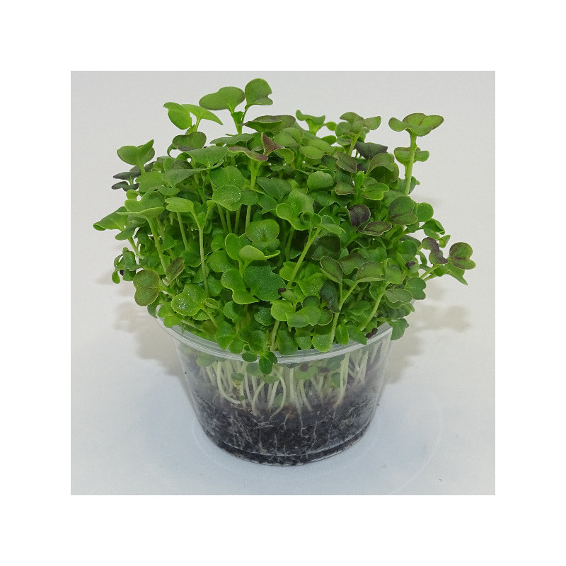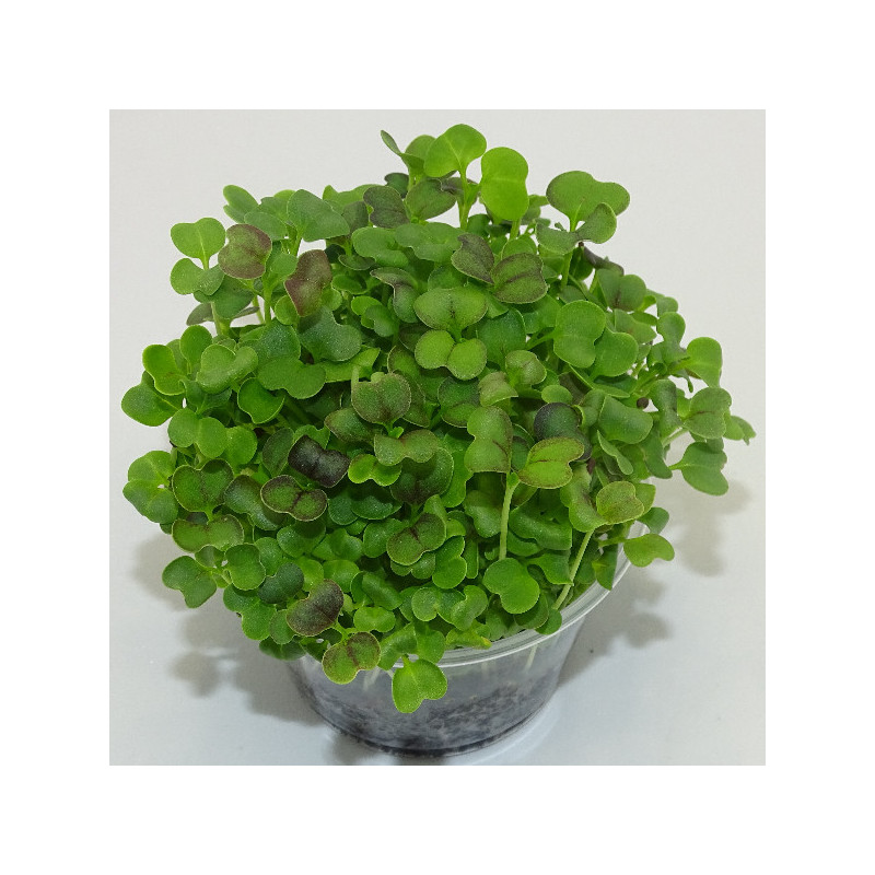 Descubre los microgreens de mostaza mizuna roja en maceta viva, un microvegetal comestible de sabor suave con un ligero toque picante, ideal para ensaladas, platos gourmet y cocina asiática. Cultivados en condiciones controladas, se presentan en maceta viva para garantizar máxima frescura, permitiendo su corte en el momento del consumo. Estos brotes tiernos destacan por su textura delicada, su atractivo color rojizo y su versatilidad en cocina, siendo perfectos para quienes buscan ingredientes frescos, saludables y listos para consumir en cualquier momento.